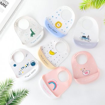 Soft Waterproof Silicone Baby Bib with Catcher – Unisex Animal Print Bib
