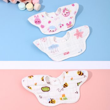 Crepe Petal Baby Bib – 360° Rotating, 6-Layer Cotton Gauze Saliva Towel
