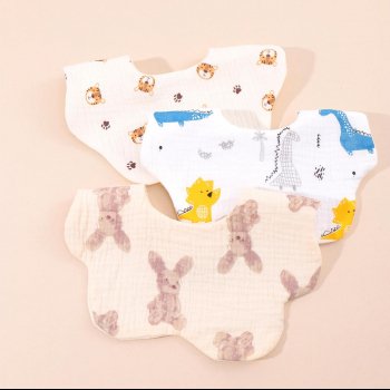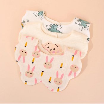 Soft and Absorbent Korean Cotton Gauze Baby Bib – Cute Cartoon Double-Sided Saliva Towel