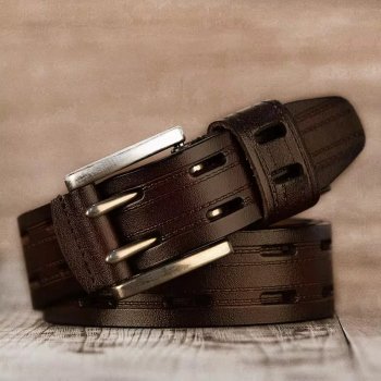 3.8CM Pure Cowhide Leather Belt with Engraved Brass Buckle