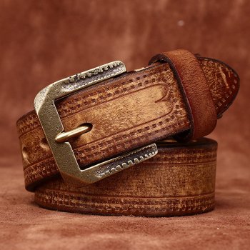 Men’s Genuine Leather Belt with Retro Brass Buckle