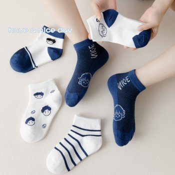 Toddler Summer Mesh Cotton Socks with Grips – 5 Pairs Breathable Baby Socks