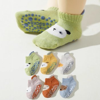 Toddler Non-Slip Grip Socks with Animal Prints – 6 Pairs, Ages 0-5 Years