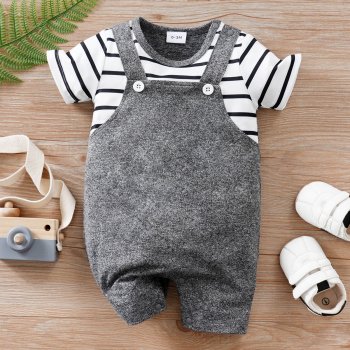 Striped Baby Romper with Suspenders – Summer Short Sleeve Onesie (0-18M)