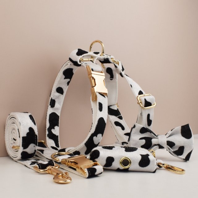 This set includes everything you need for a polished and coordinated look: a dog collar, leash, harness, detachable bow, flower accessory, and even a poo bag holder. Each piece is carefully tailored to fit comfortably while providing strength and control for owners. Available in multiple sizes, it’s a perfect choice for puppies, small breeds, and larger dogs alike.