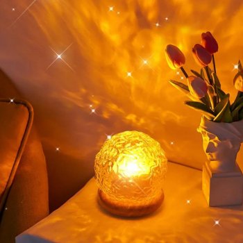 Water Ripple Projector Night Light Crystal Mood Lamp with 16 Colors