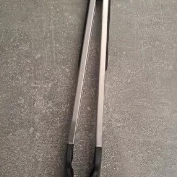 Long pair of tongs nice quality. Packaged well nice delivery. Not as sturdy as oxo but still good.