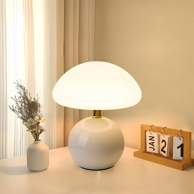 Bring a touch of modern charm into your home with this Mushroom Ceramic Table Lamp. Designed with a smooth cream-colored ceramic base and a softly rounded lampshade, this lamp adds elegance and cozy light to any space. Its eye-friendly LED glow creates a warm atmosphere that enhances relaxation, making it the perfect companion for evenings at home.