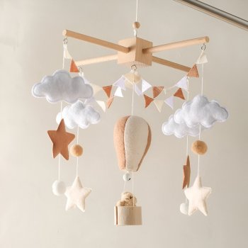 Wooden Baby Crib Mobile with Soft Felt Balloons & Musical Bed Bell Toy