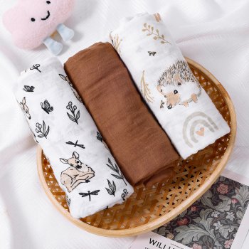 3-Piece Cotton Muslin Baby Swaddle Blanket Set