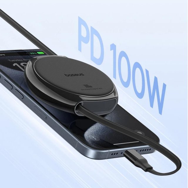 Experience the perfect balance of speed, style, and practicality with this retractable USB-C fast charging cable. Designed for modern devices, it delivers 100W PD fast charging, making it powerful enough to charge laptops, tablets, and the latest smartphones in record time. With its smooth retractable design and mini compact body, this cable is built for portability and everyday use.