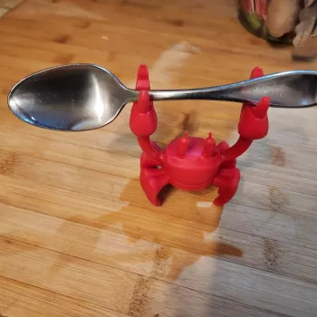 This little gadget is fantastic. I got it for my home after seeing something similar at my parents' house, but this one is more fun as it's shaped like a crab. It swivels to hold the spoon in different positions, which I didn't realize when I bought it. It's very easy to clean and use.