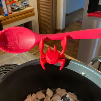Everyone notices my little crab on the stove. It holds spoons as intended, but it's the appearance that really catches people's attention.