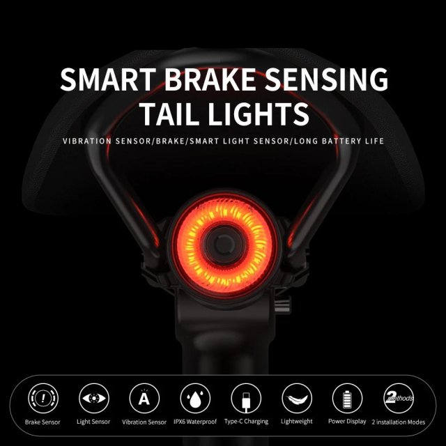 Smart Auto Brake Sensing Bike Tail Light USB-C Rechargeable Waterproof