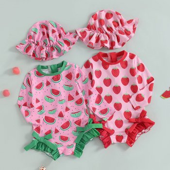 Toddler Girl Long Sleeve Rash Guard Swimsuit with Hat