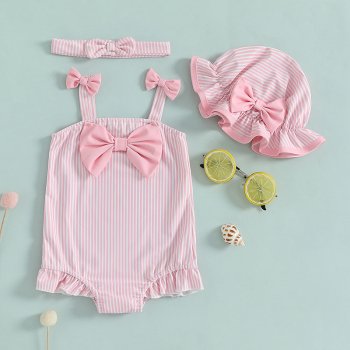 Toddler Girl 3-Piece Striped Swimsuit Set with Sun Hat & Bow Headband
