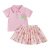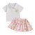 The crisp collared shirt adds a classic flair, while the flared skirt gives her room to move, twirl, and play freely. With breathable, lightweight fabric and an easy pullover design, it’s a go-to favorite for summer days and casual events. Available in soft white or pink, this set delivers a cute and coordinated look without any fuss.