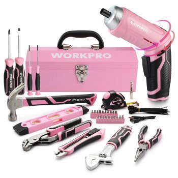 74-Piece Pink Tool Kit with Cordless Screwdriver and Portable Steel Box