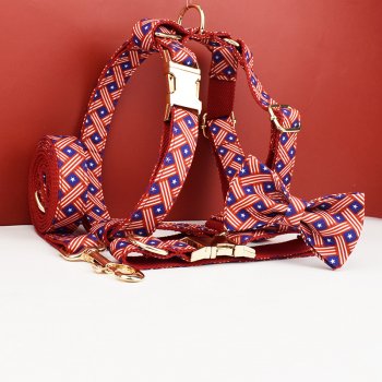 Polyester Dog Collar, Leash, Harness & Bow Set
