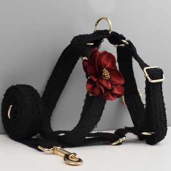 Luxury American Flag Dog Collar Leash & Harness Set with Bow Tie